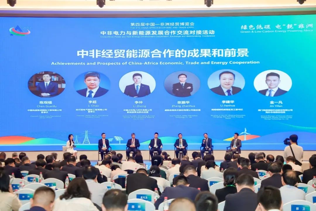 在交流对话环节中,中国电建集团国际工程有限公司党委书记、董事长陈观福,哈尔滨电气国际工程有限公司党委书记、董事长李超,中国水利电力对外有限公司新能源事业部总经理李仲,威胜信息技术股份有限公司副总裁张振华,湖南城陵矶新港区党工委书记李建华,厦门海辰储能科技股份有限公司海外市场部总经理金一凡等嘉宾就中非能源合作实践成果和未来前景进行了深入交流与探讨。